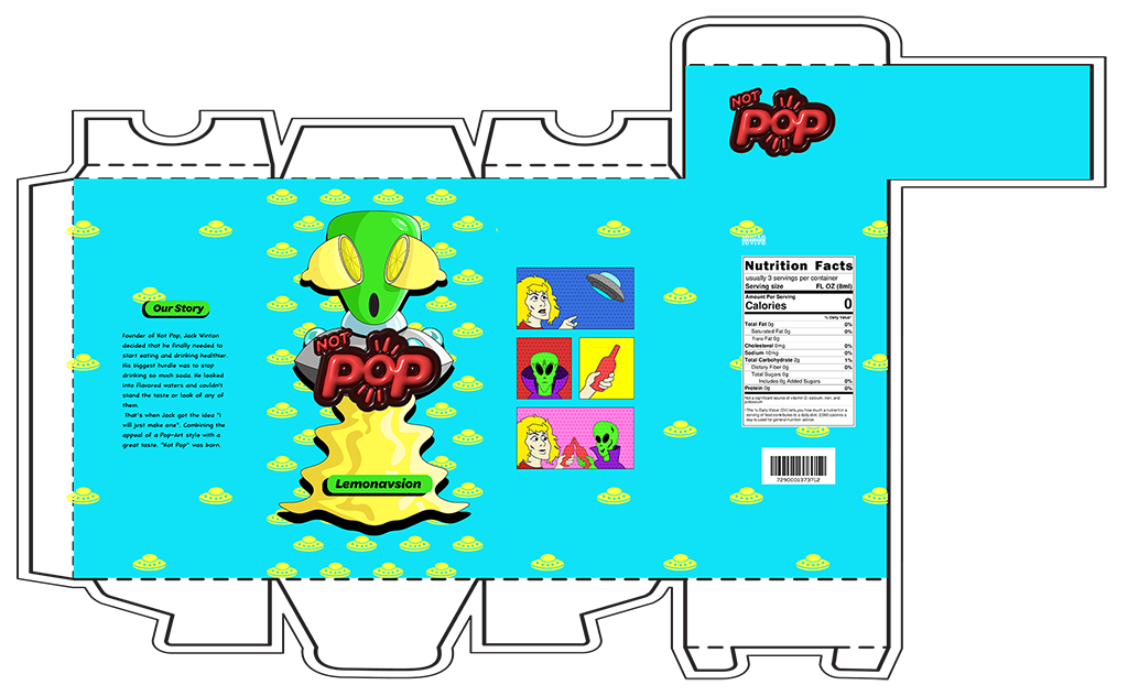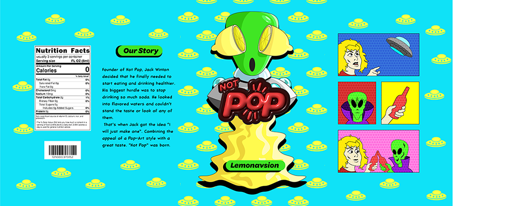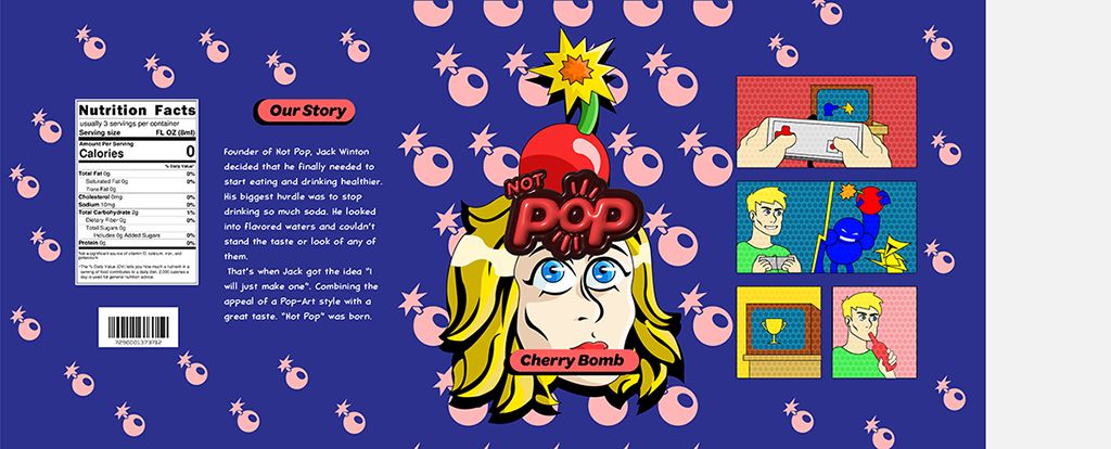 Creating a simple backstory to and choosing a concept of using the pop art style. The goal was to create a fun and unique approach to making healthier drinking more appealing.